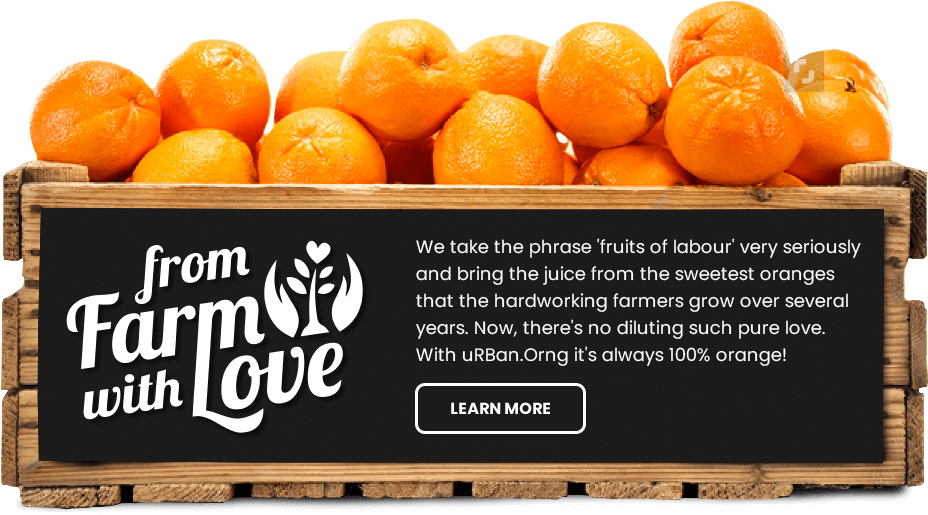 uRBan.Orng strives to ensure 100% purity and is made with whole oranges that are chosen with utmost care and love by farmers. We don't entertain preservatives, sugar or colours to ruin your orange juice experience and bring the best from the farms. Relish your fill with a rush of purity and love in every sip!